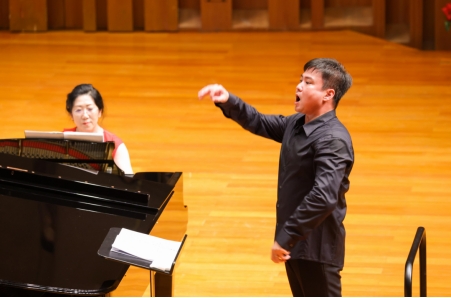 上半场,音乐会的表演形式和内容编排可谓丰富多彩,男声合唱、女声合唱、女声独唱、男声六重唱、混声合唱,形式多样的精彩表演,娓娓道来的全情演唱,时而悲壮激动、时而轻快动感、时而如泣如诉、时而铿锵有力。国交艺术家们用动听动情、扣人心弦的歌声唱出了聂耳先生对底层人民的深切关爱与同情,唱出了身负重任的当代青年为争取自由解放而团结战斗的舍生忘死的牺牲精神,更唱出了中华民族不屈不挠抵抗外来侵略的坚强意志,令现场观众感动不已。
