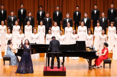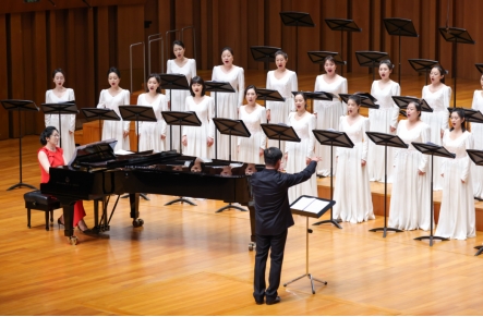 2022年8月11日晚,《红色传承》——中国交响乐团合唱音乐会在国家大剧院音乐厅成功举办。国交合唱团常任指挥、青年指挥家王琳琳、合唱团马若然、霍元圆、裴磊、康雅杰、王旭、王煦然等优秀艺术家及钢琴演奏家贾琳琳、程艳等60多人以优美歌声、磅礴气势呈现了人民音乐家聂耳先生创作的《大路歌》《铁蹄下的歌女》《梅娘曲》《毕业歌》等代表作。中国交响乐团经典保留曲目,双钢琴版《黄河大合唱》更是点燃观众热情,引发强烈共鸣。